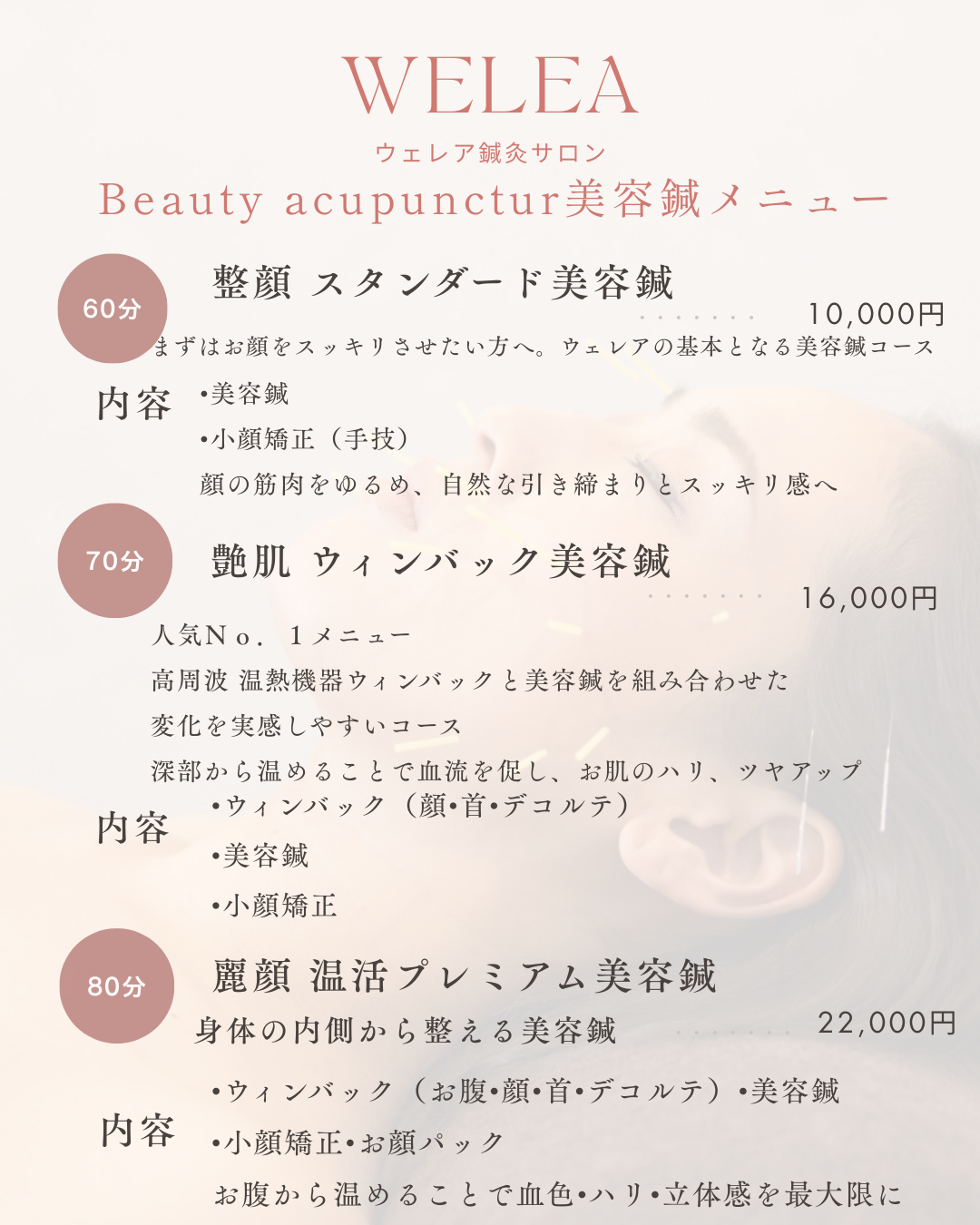 ・内容:ウィンバック(顔・首・デコルテ)+美容鍼+小顔矯正